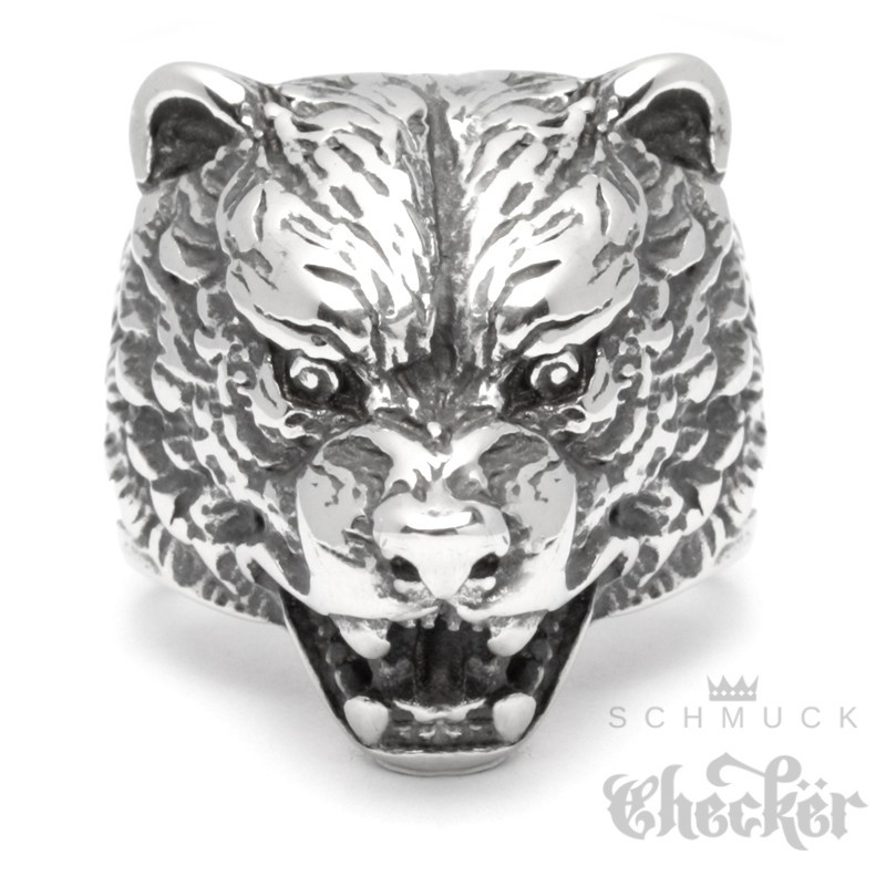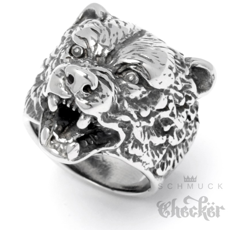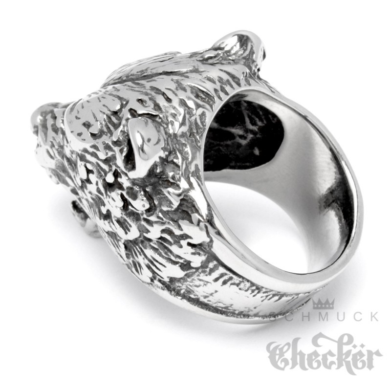 Großer Bären-Ring aus Edelstahl silber hochwertig Bär Grizzly Männer Bikerschmuck