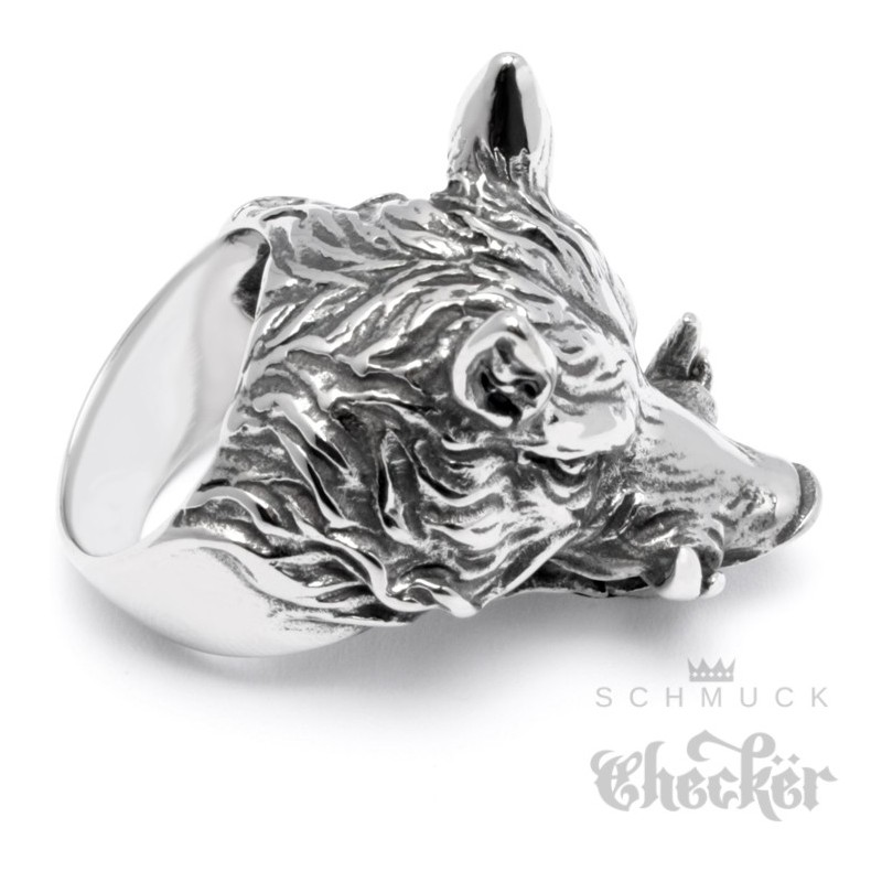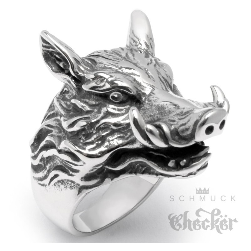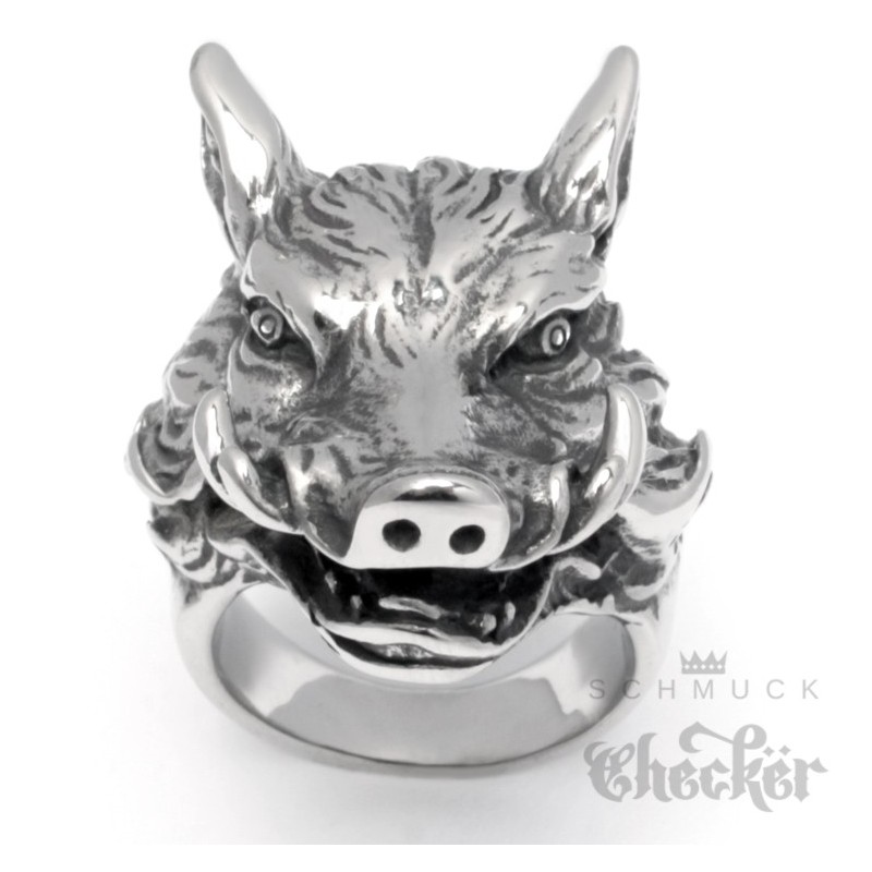 Großer Wildschwein Ring Edelstahl hochwertig silber Herren Männer Bikerring kaufen