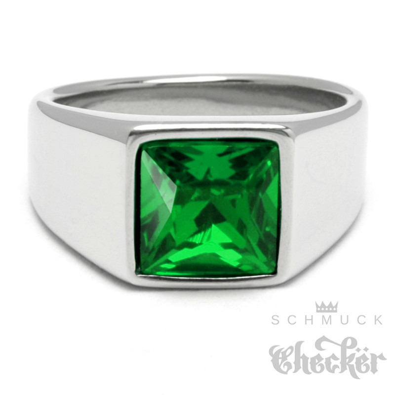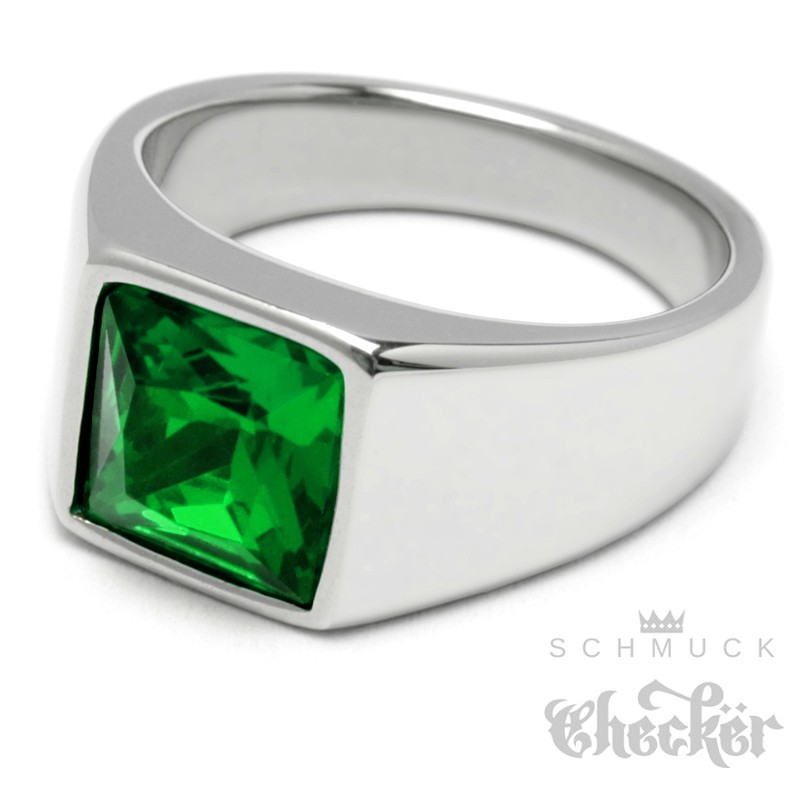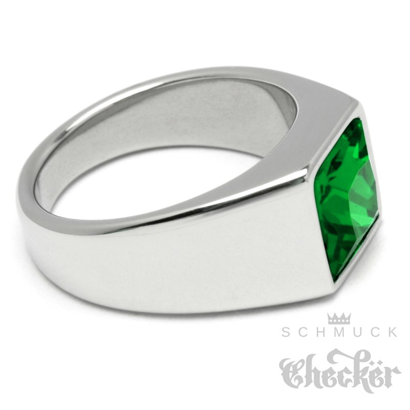 Herren Ring Solitär Stein Smaragd-Grün für den kleinen Finger silber aus Edelstahl