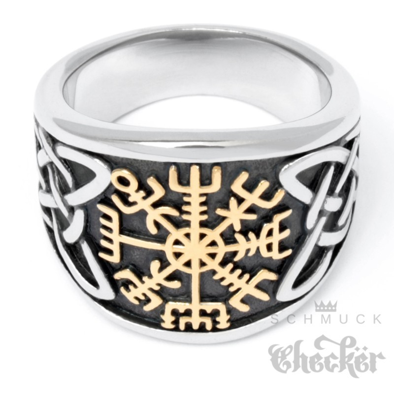 Hochwertiger Wikinger-Ring aus Edelstahl mit goldenem Vegvisir Runenkompass Bicolor