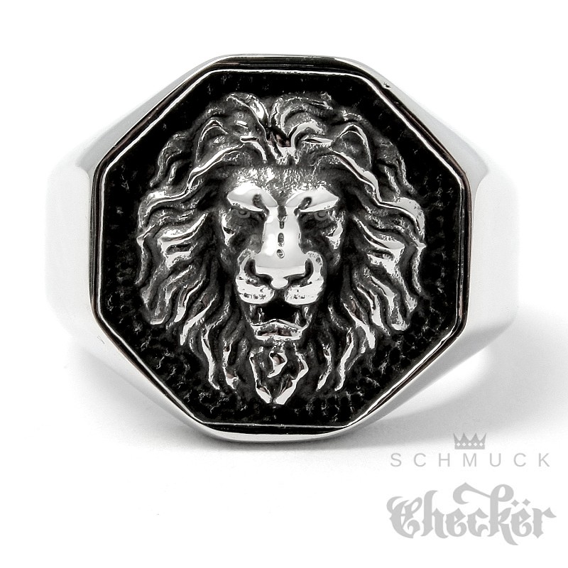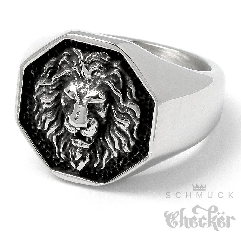 Löwen-Ring aus Edelstahl silber poliert Löwen-Kopf Herrenring Männer Schmuck