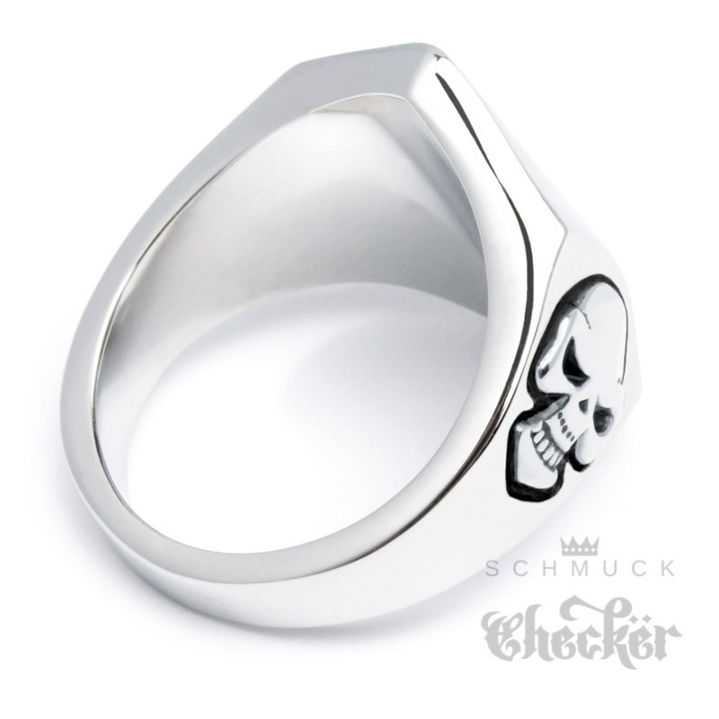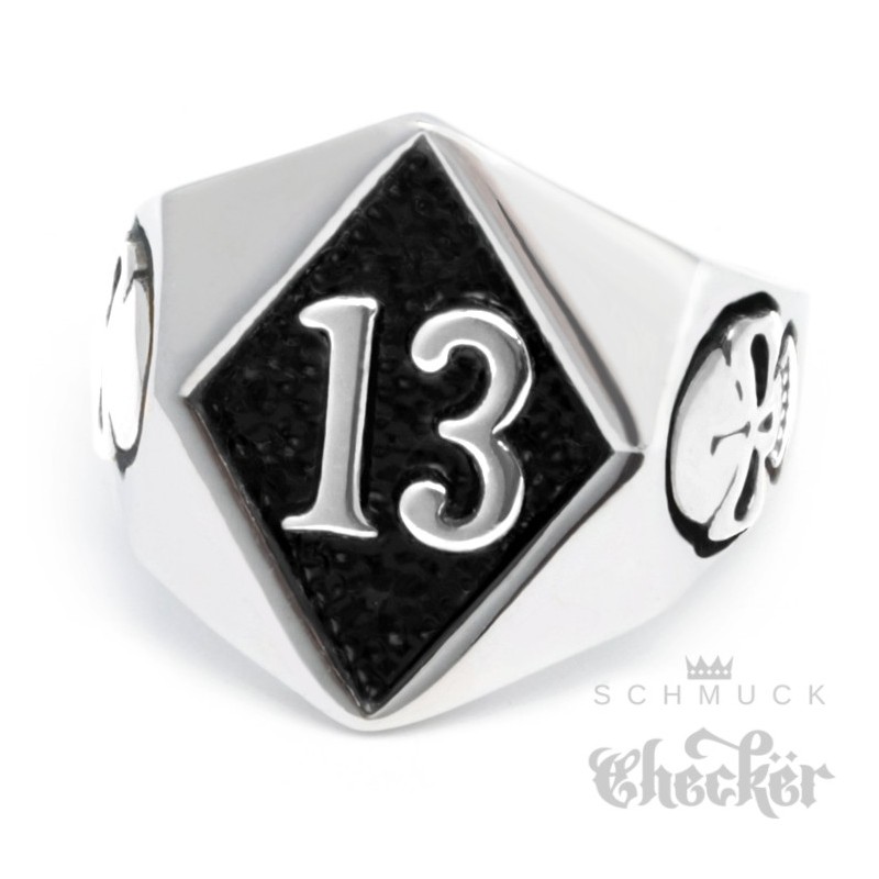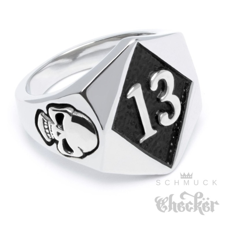 Lucky 13 Ring aus Edelstahl silber Glückszahl Glück Pech Totenkopf Bikerring