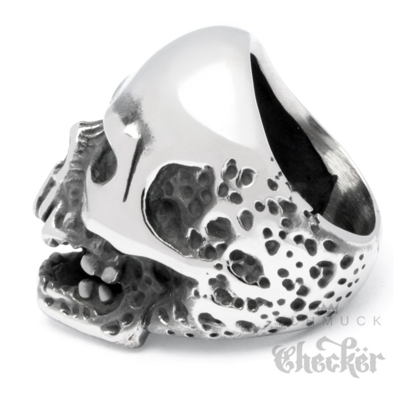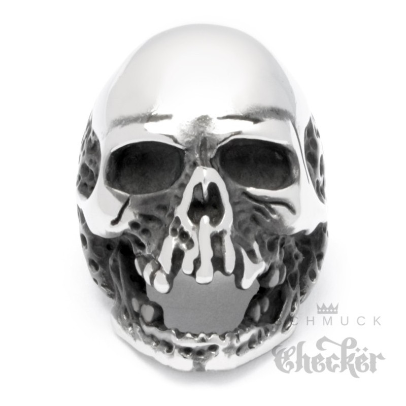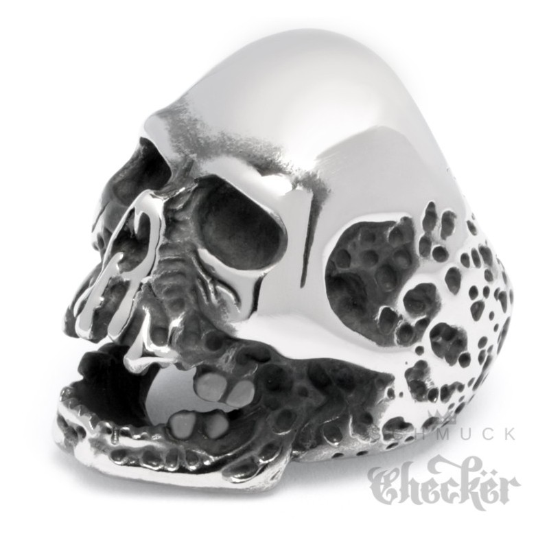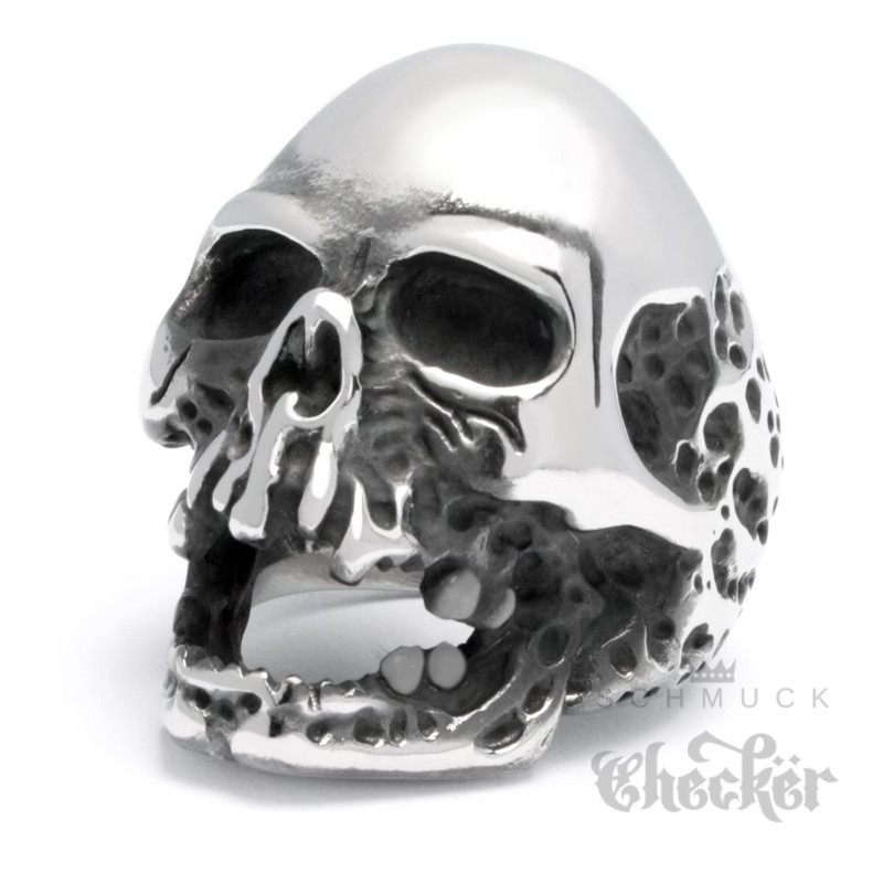 Massiv Edelstahl Ring Totenkopf Schädel silber alt zerfallen Pirat Bikerring
