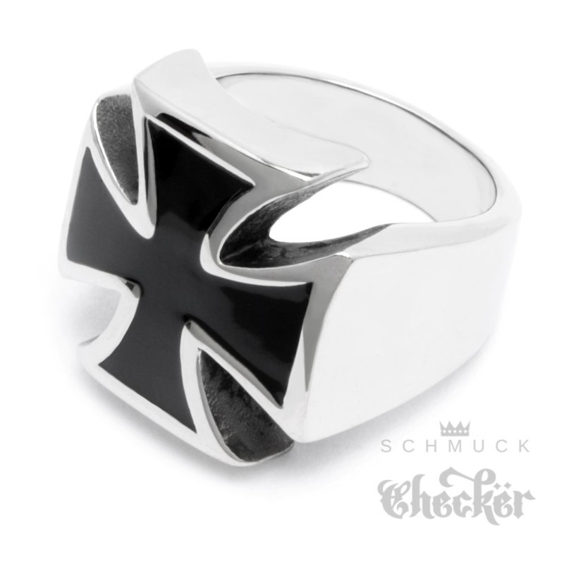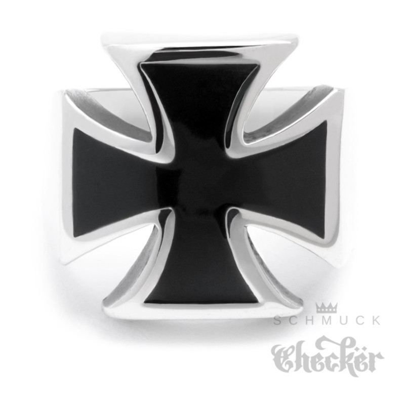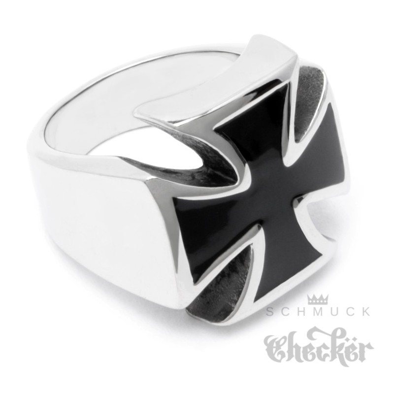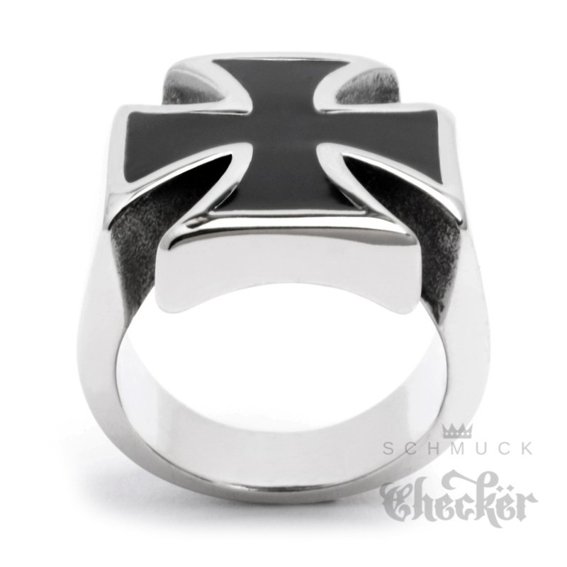 Massiver Edelstahl Biker Ring Eisernes Kreuz silber schwarz
