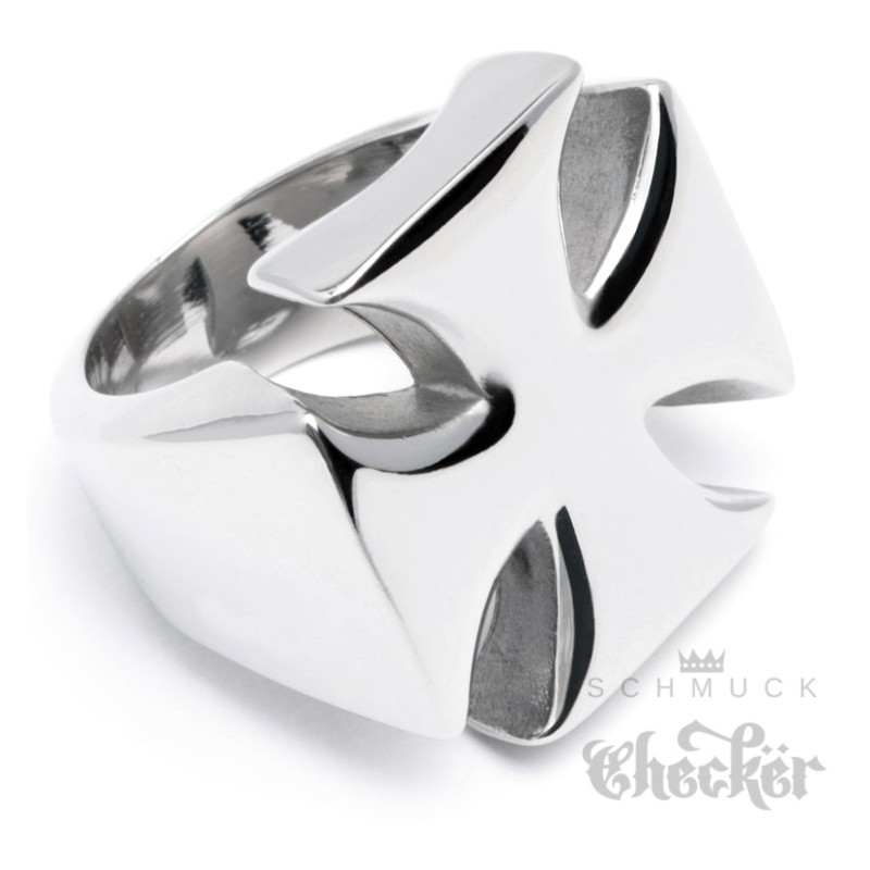 Massiver Edelstahl Bikerring Eisernes Kreuz Herren Ring silber Bikerschmuck