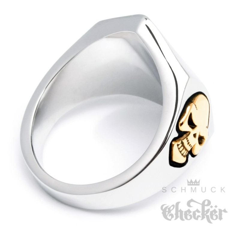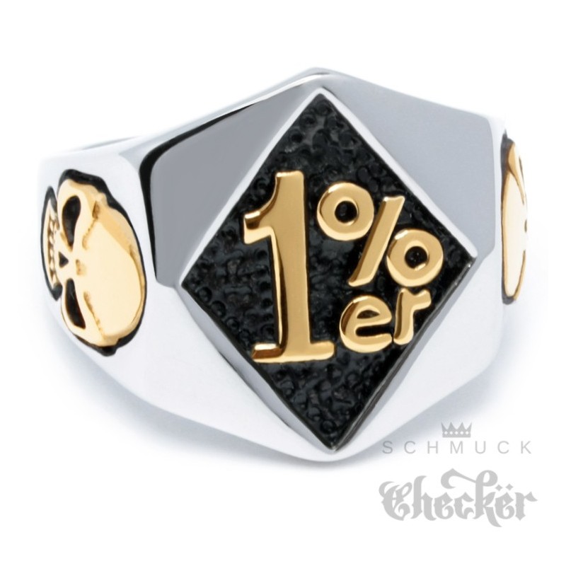 Massiver 1%er Onepercenter Bikerring silber gold aus Edelstahl Outlaw Rocker Schmuck