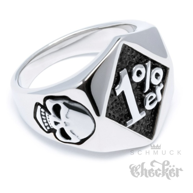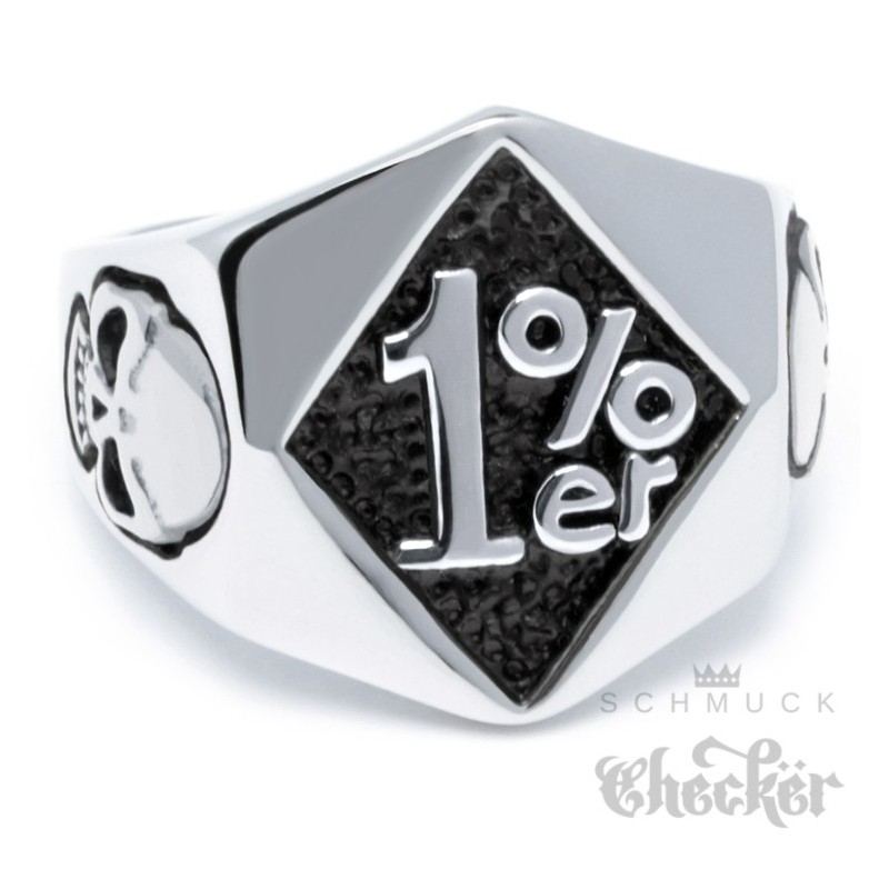 Massiver Edelstahl Ring 1%er Onepercenter Einprozenter Outlaw Gesetzlos Biker 1%