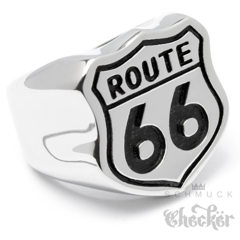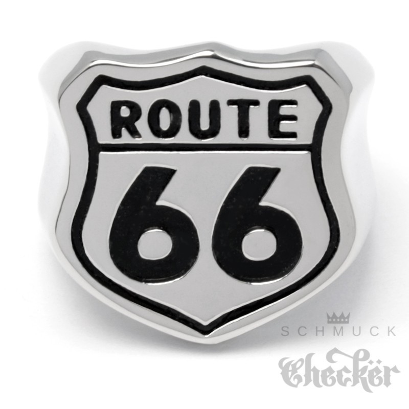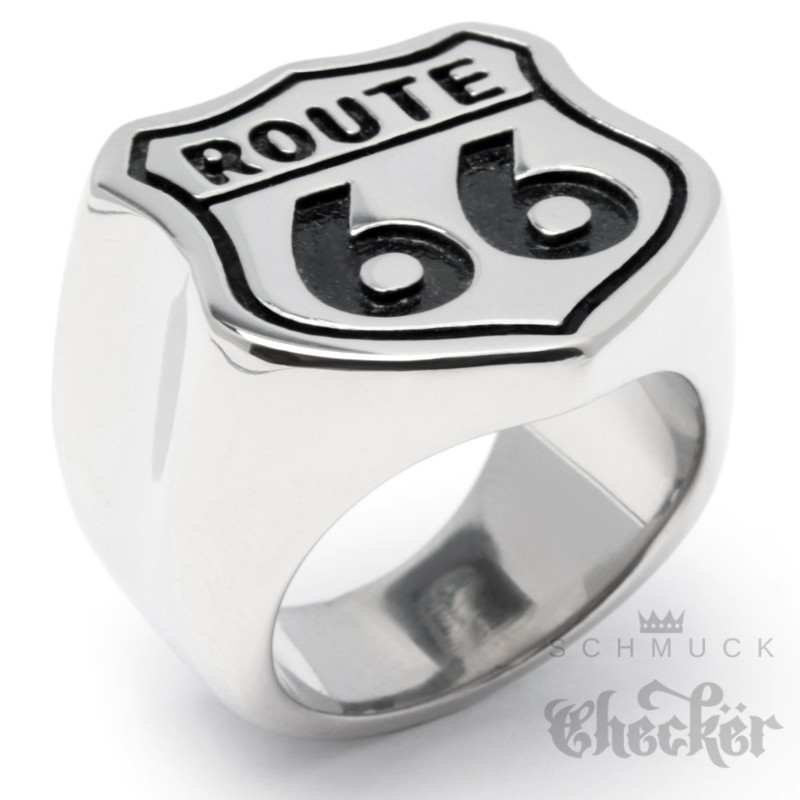 Massiver Route 66 Edelstahl Ring silber poliert America‘s Mother Road Bikerring