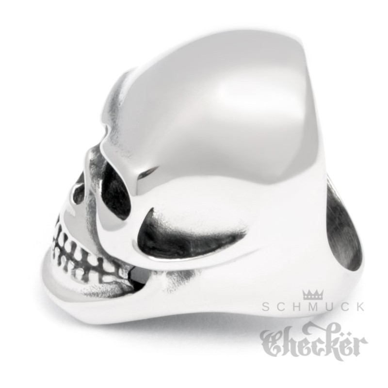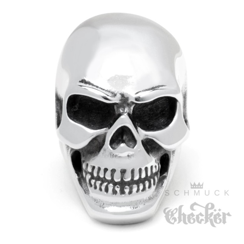 Das ist ein XXL-Totenkopfring aus poliertem Edelstahl. Dieser Ring ist groß, schwer und detailliert gefertigt. Ein absolut geiler Bikerring für alle die auf großen Männerschmuck stehen. Der Ring ist teilweise geschwärzt um Augenhöhlen, Nasenlöcher und Zähne besser hervorzuheben. Diesen hochwertigen Skullring kannst Du hier günstig kaufen. Einfach Ringgröße auswählen und bestellen.