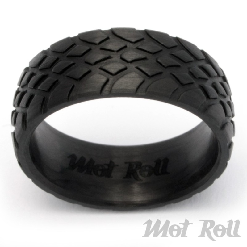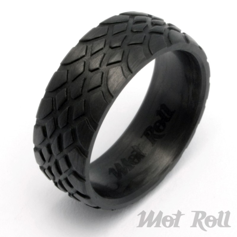 Mot Roll Schwarzer Carbon Ring mit Reifenprofil Reifen Bikerring Männergeschenk