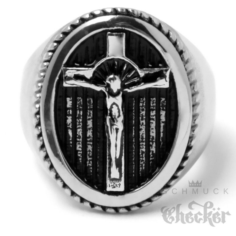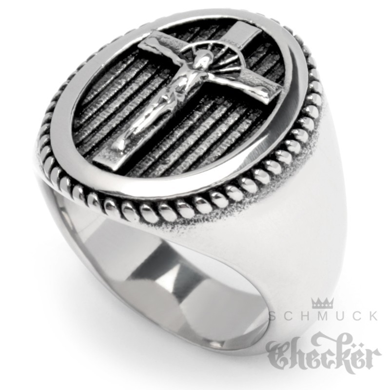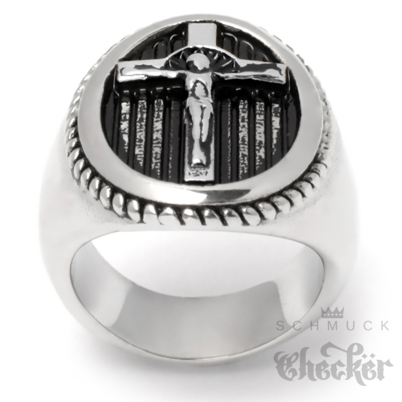 Ring mit Kreuz & Jesus silber aus massivem Edelstahl 316L Christliches Herren Geschenk
