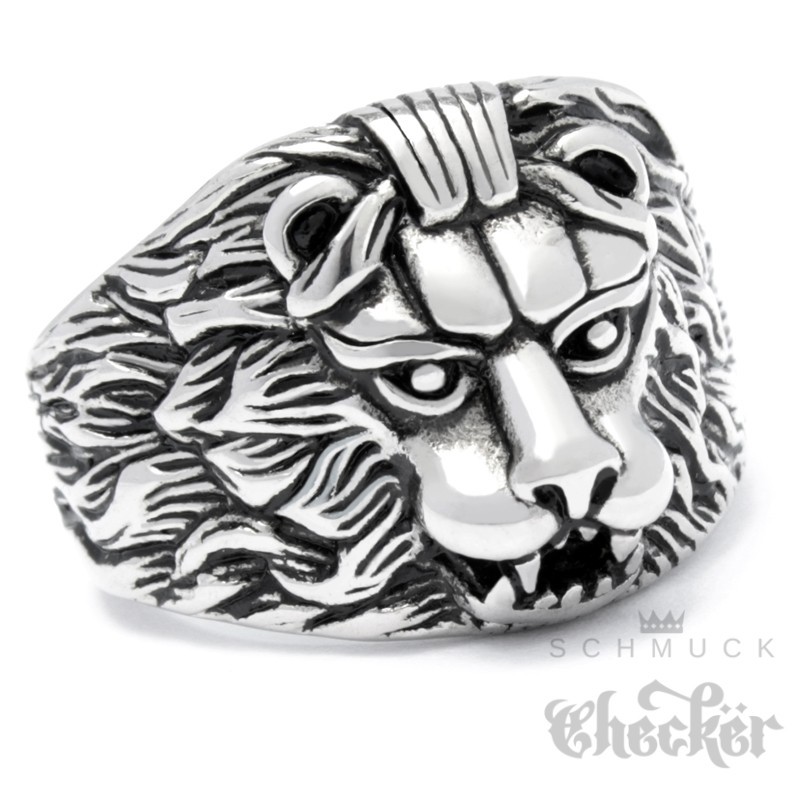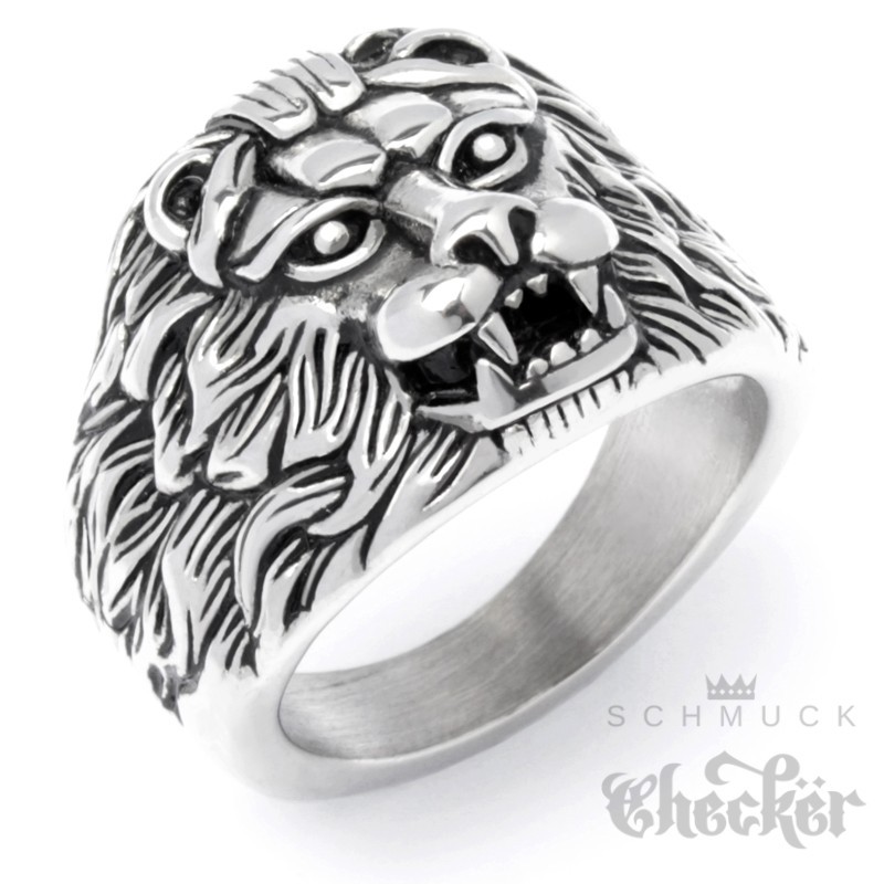Ring mit Löwe aus Edelstahl silber hochwertig Löwenkopf Bikerring Herrenring Lion