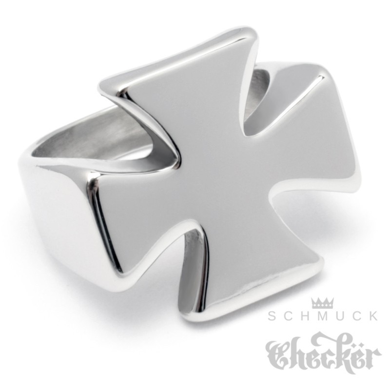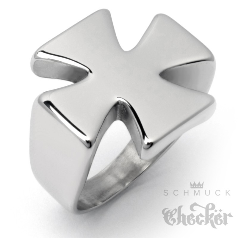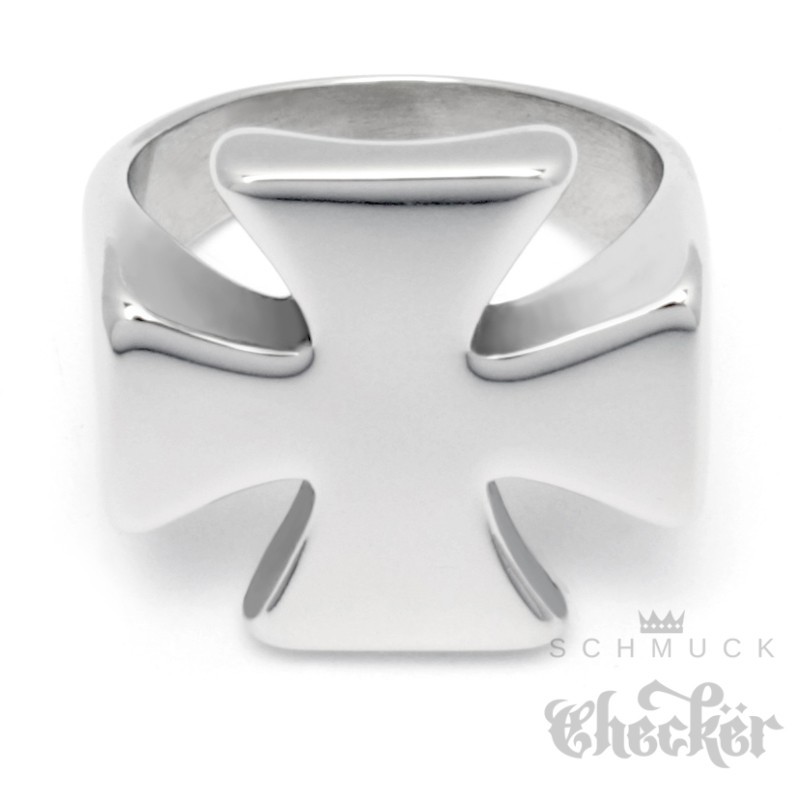 Schlichter Ring mit Eisernem Kreuz aus Edelstahl silber poliert massiver Bikerring