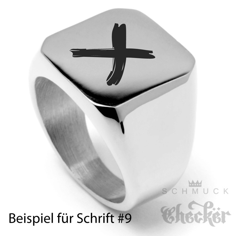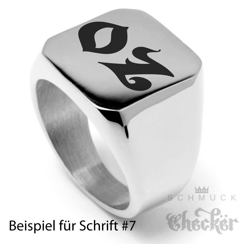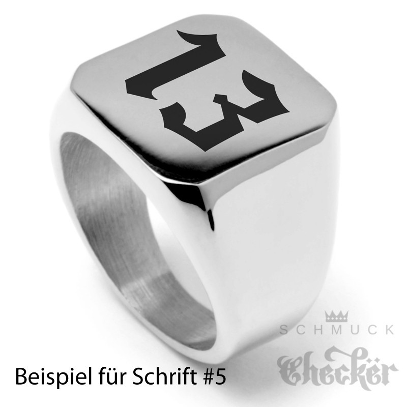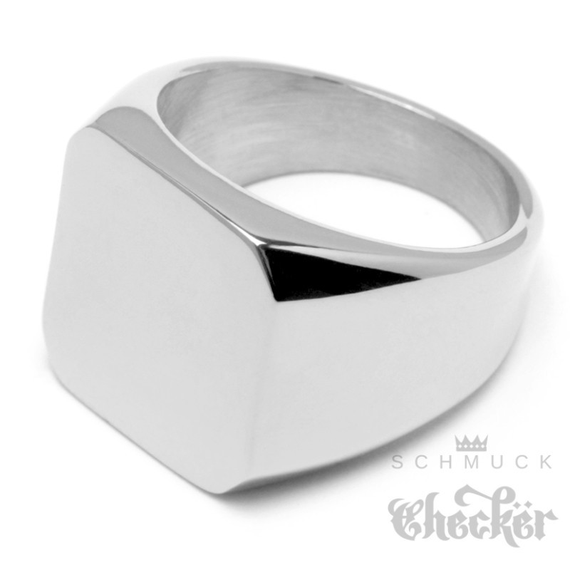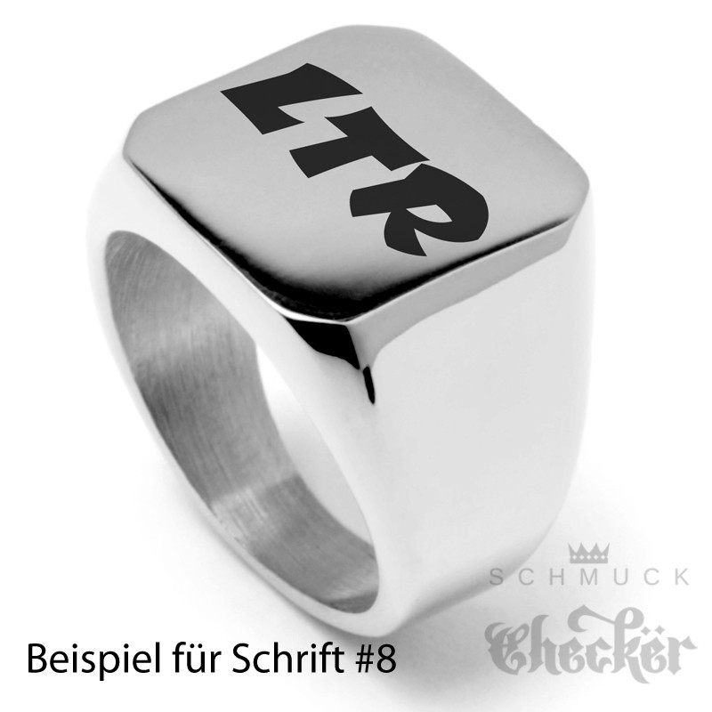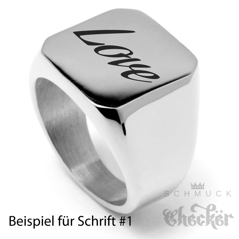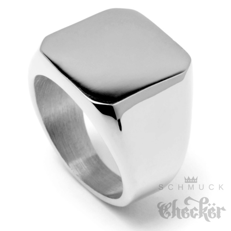 Siegelring mit individueller Gravur aus Edelstahl silber poliert viereckig Geschenk