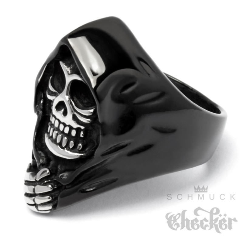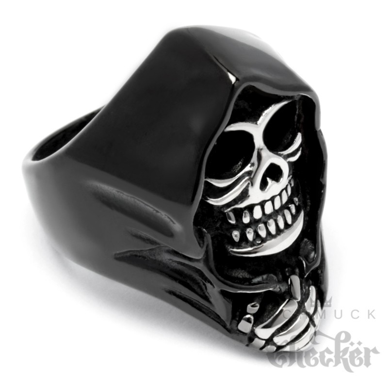 Schwarzer Sensenmann mit silber Skull aus Edelstahl Reaper Bikerschmuck Geschenk