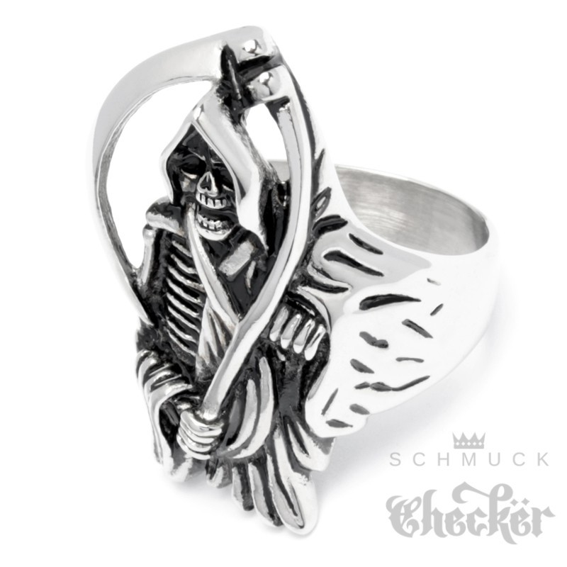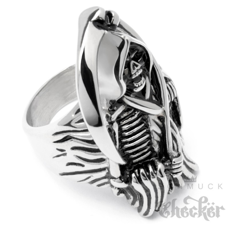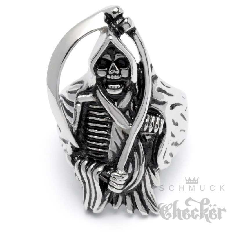 Großer Sensenmann-Ring aus Edelstahl Gevatter Tod Reaper Bikerring silber Geschenk