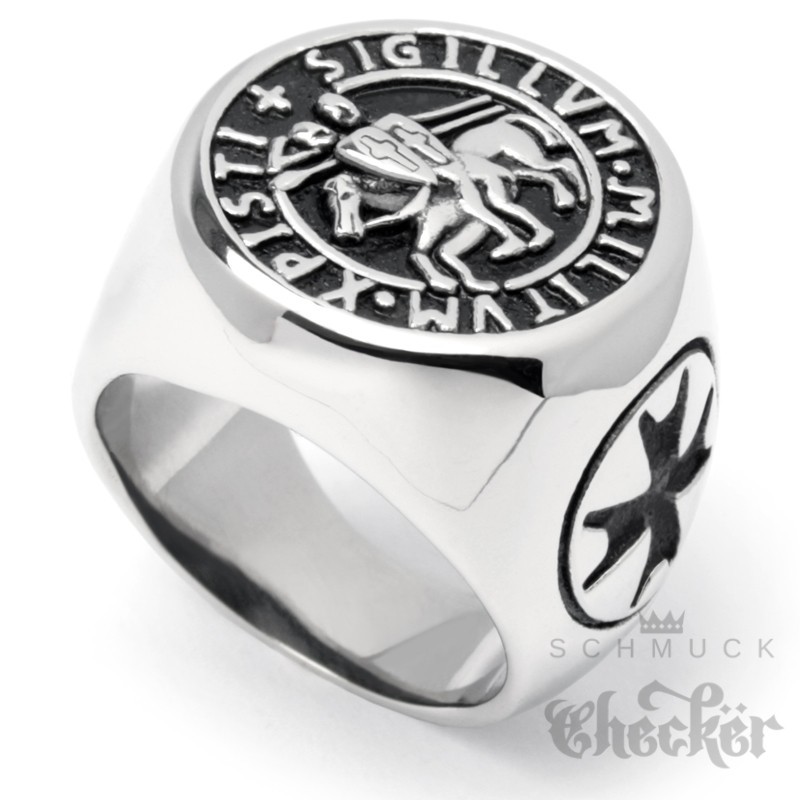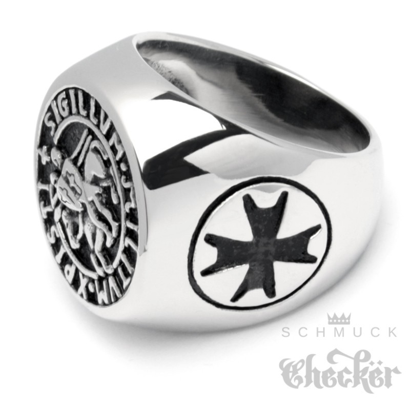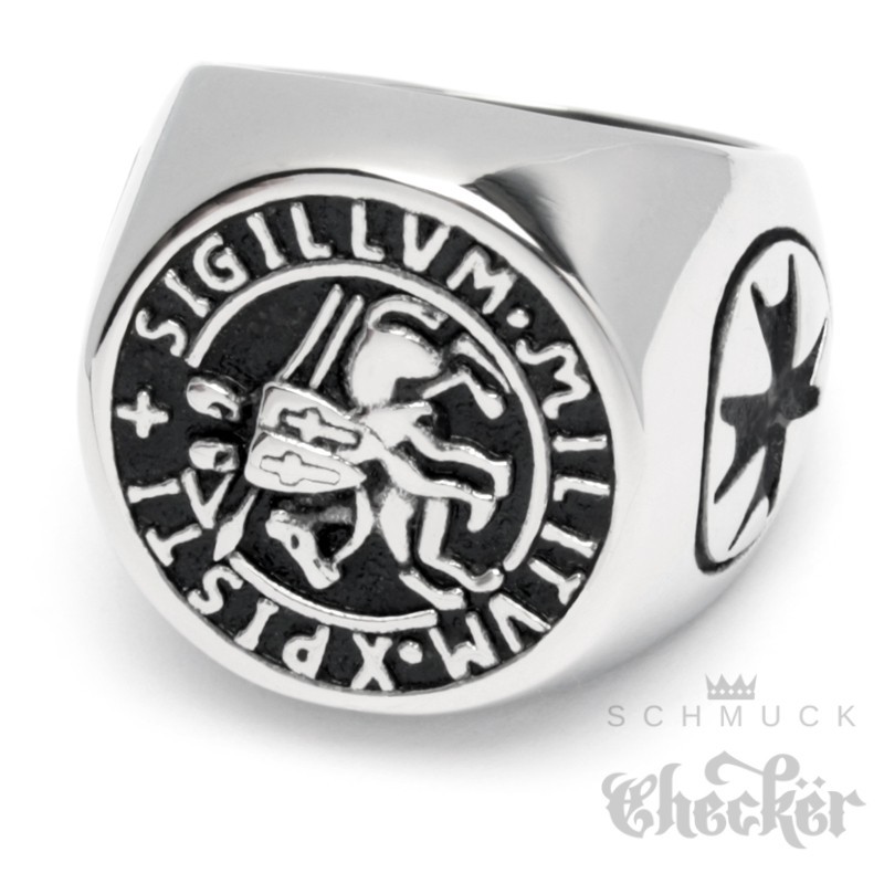 Templer Siegelring historisches Motiv hochwertiger Kreuzritter Ring aus Edelstahl