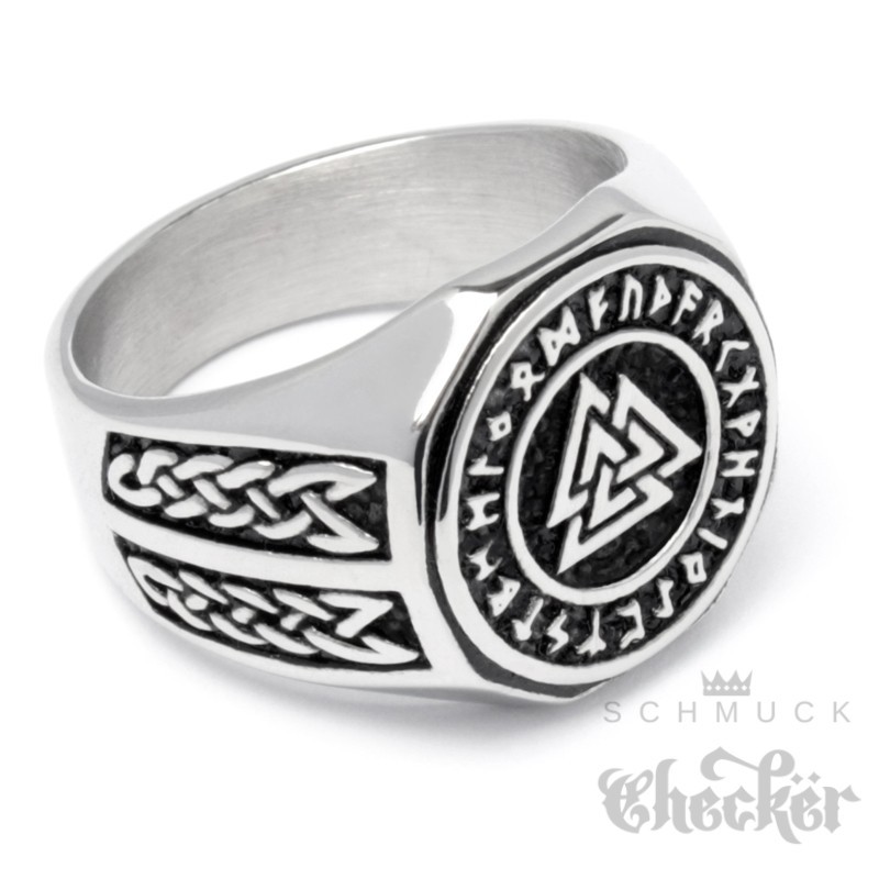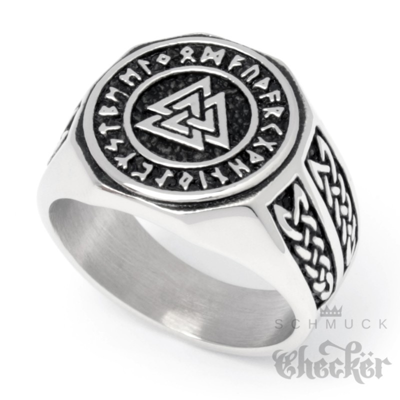 Wikinger-Ring mit Valknut Zeichen des Kriegers und Schutz-Runen Berserker Edelstahl
