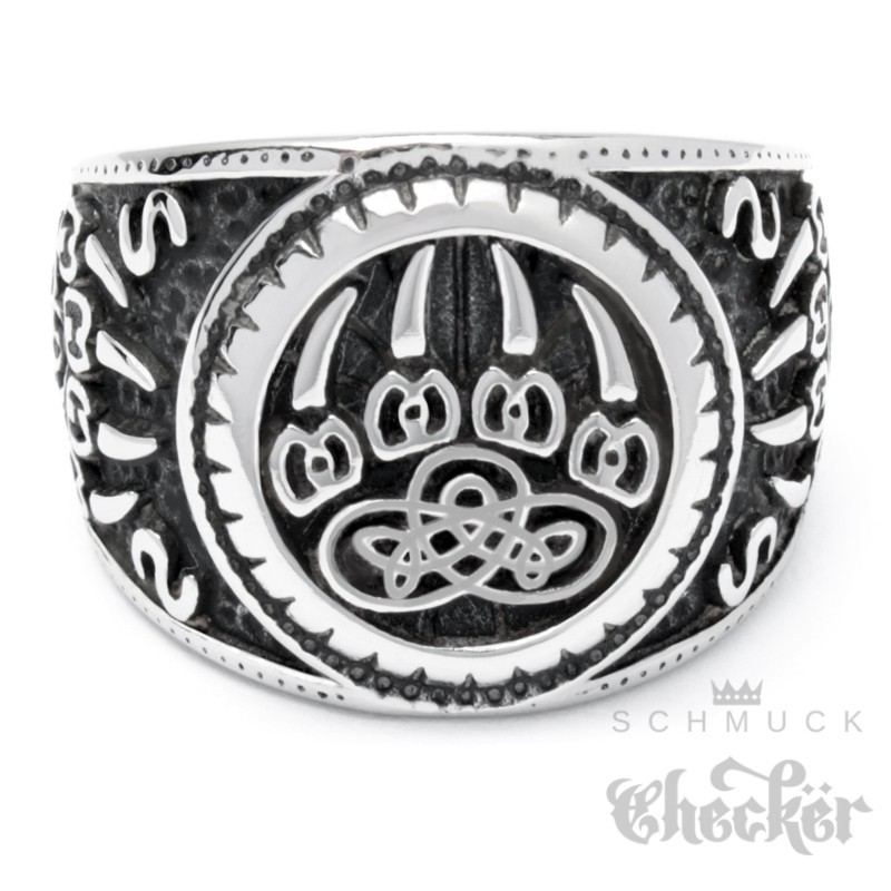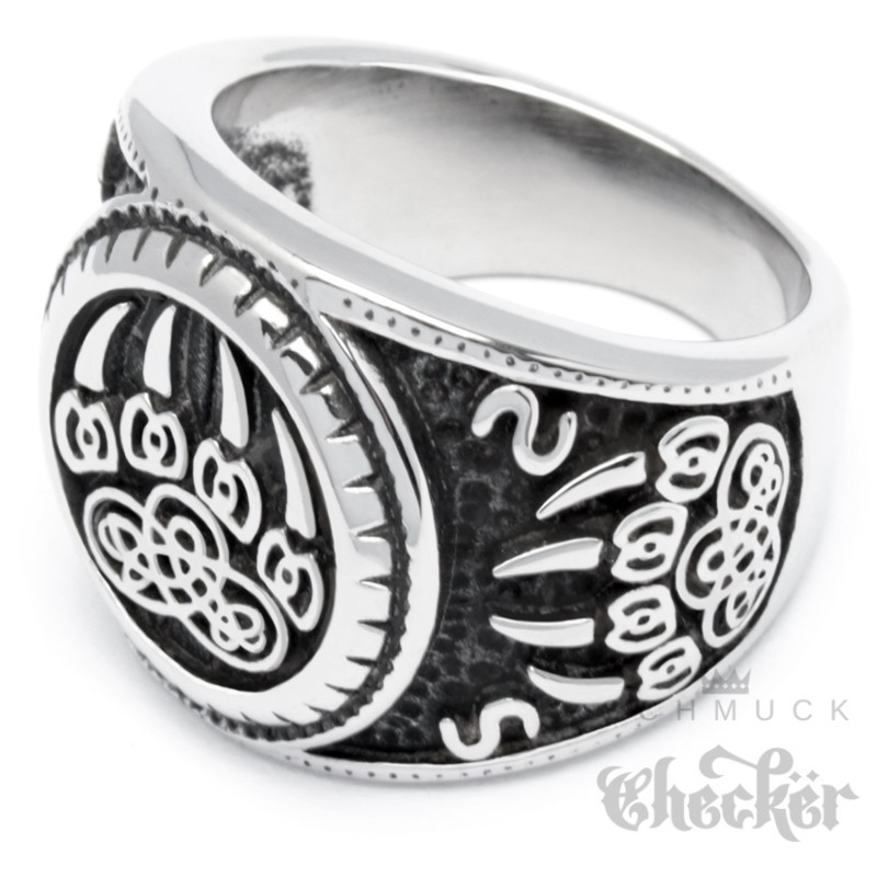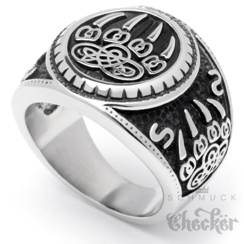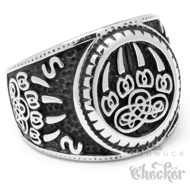 Wikingerring mit Bärentatze nordischer Berserker Ring Edelstahl silber hochwertig