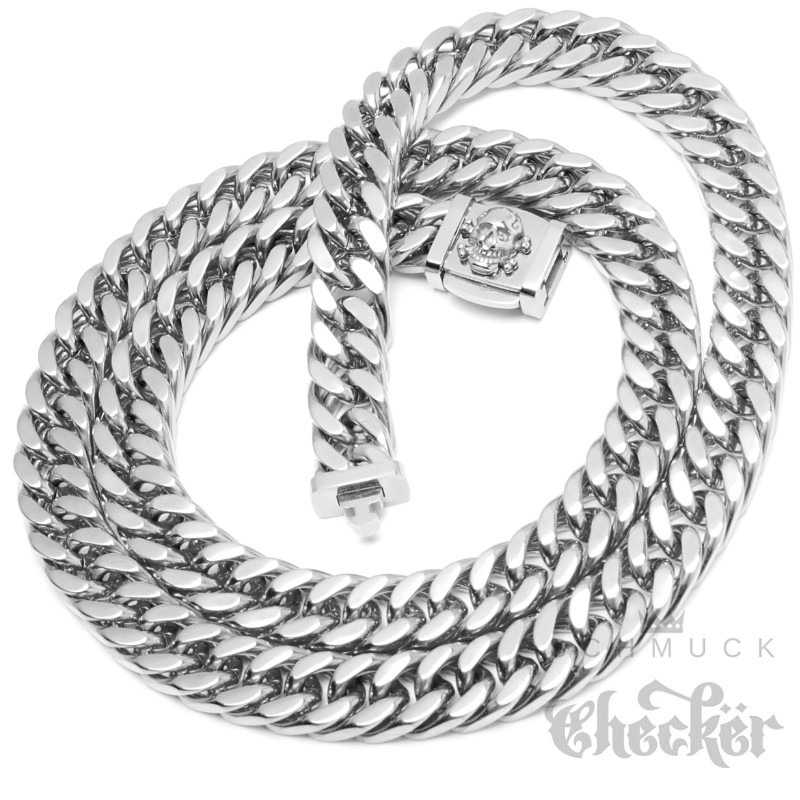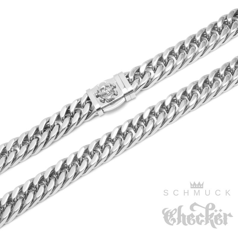 Biker-Schmuckset Halskette + Armband mit Totenkopf aus massivem Edelstahl silber