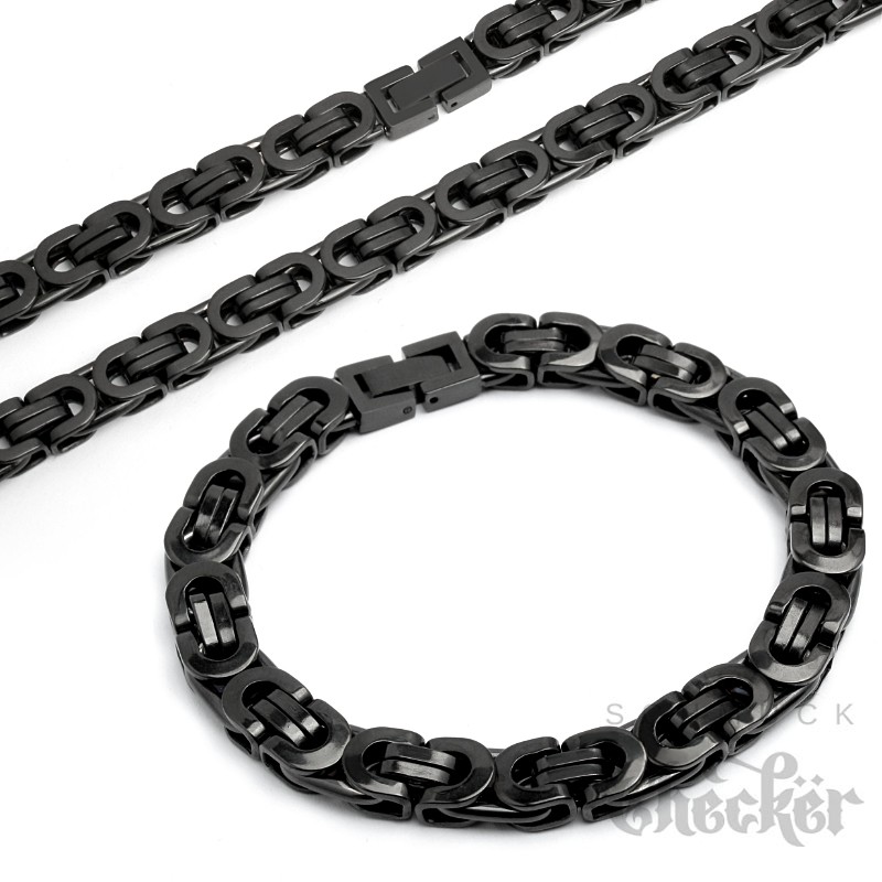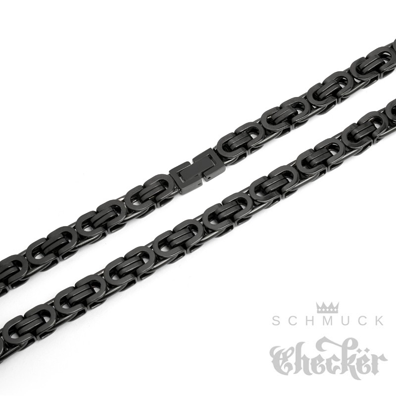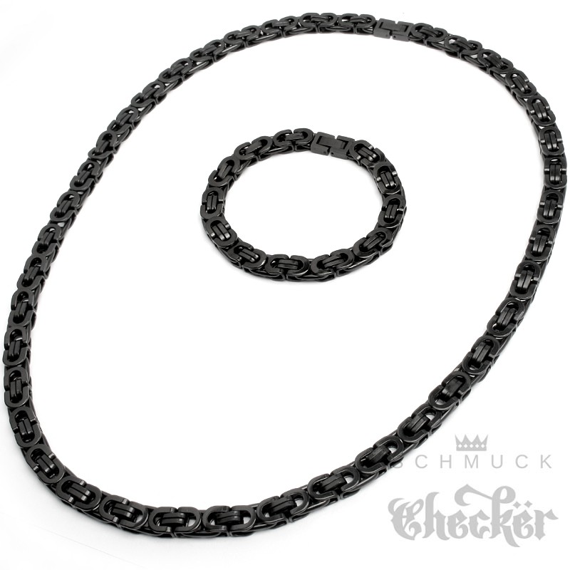 Schwarze Königskette mit passendem Armband Schmuckset aus Edelstahl Männerschmuck